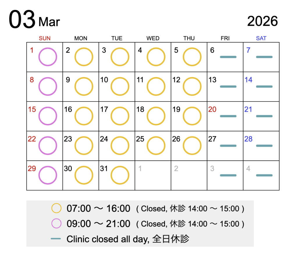◆Sun, Holiday : 9:00 – 21:00