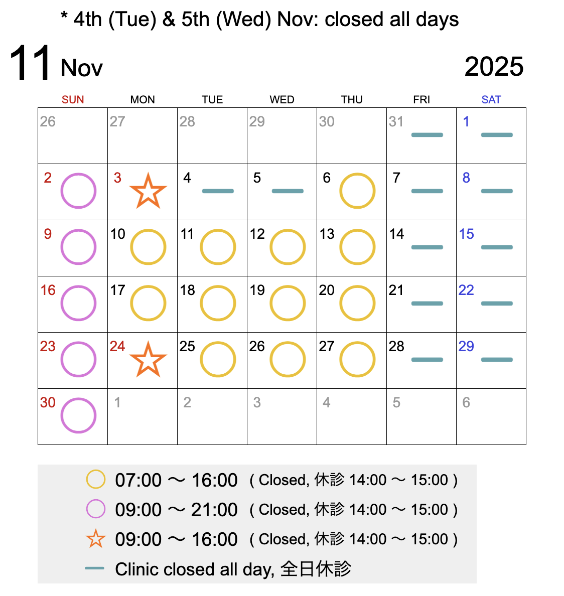 Clinic schedule