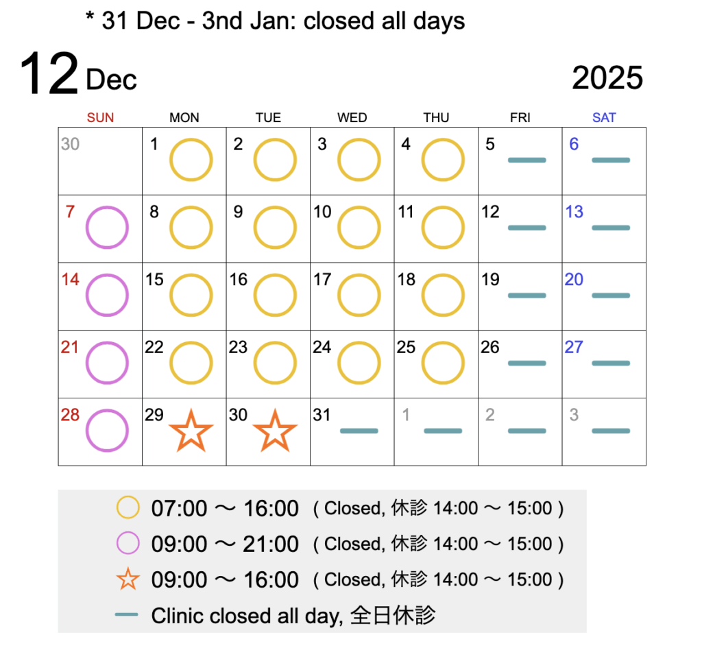 ーTemporary closed: 4th Nov(Tue.) – 5th Nov (Wed.)